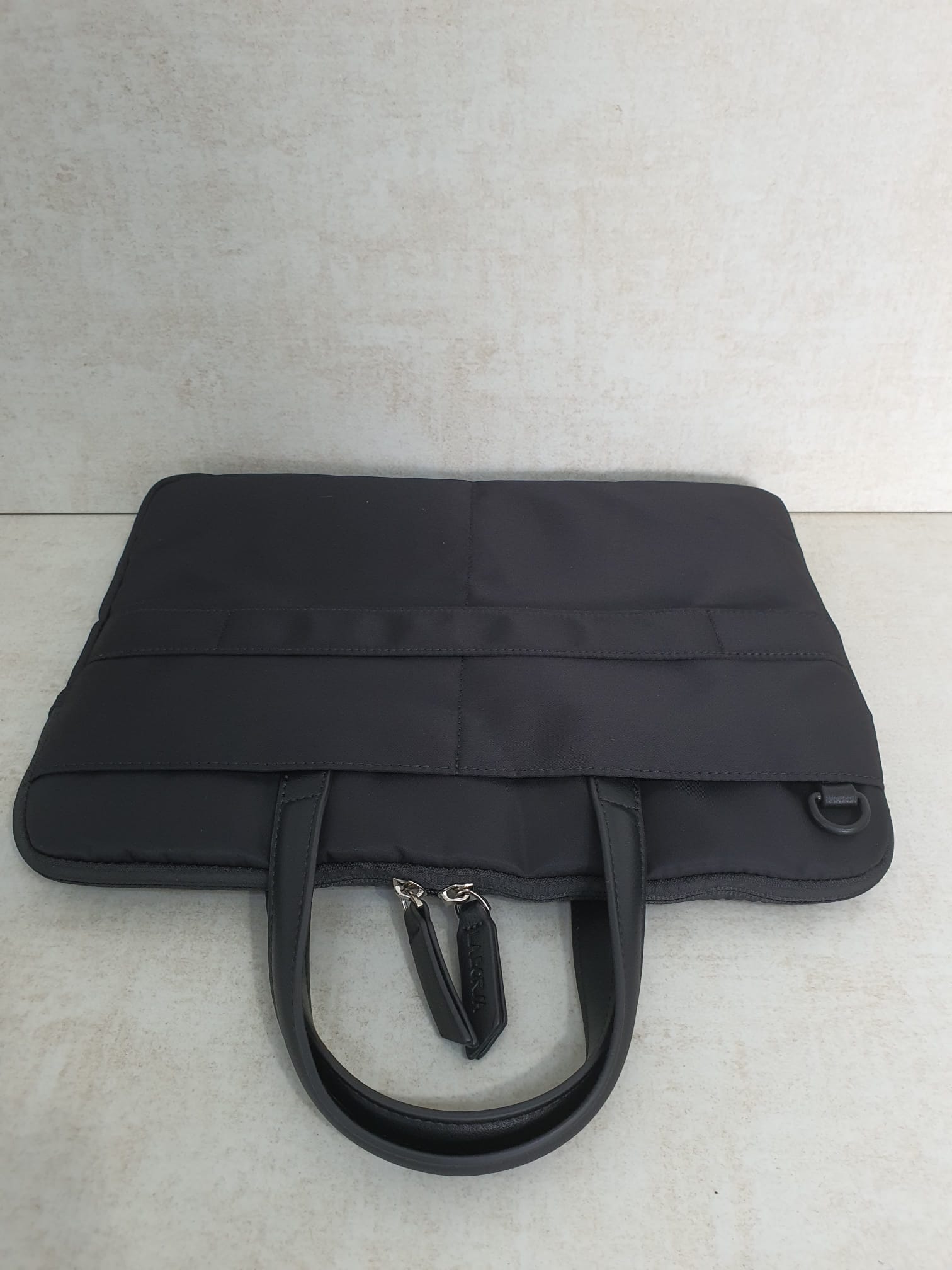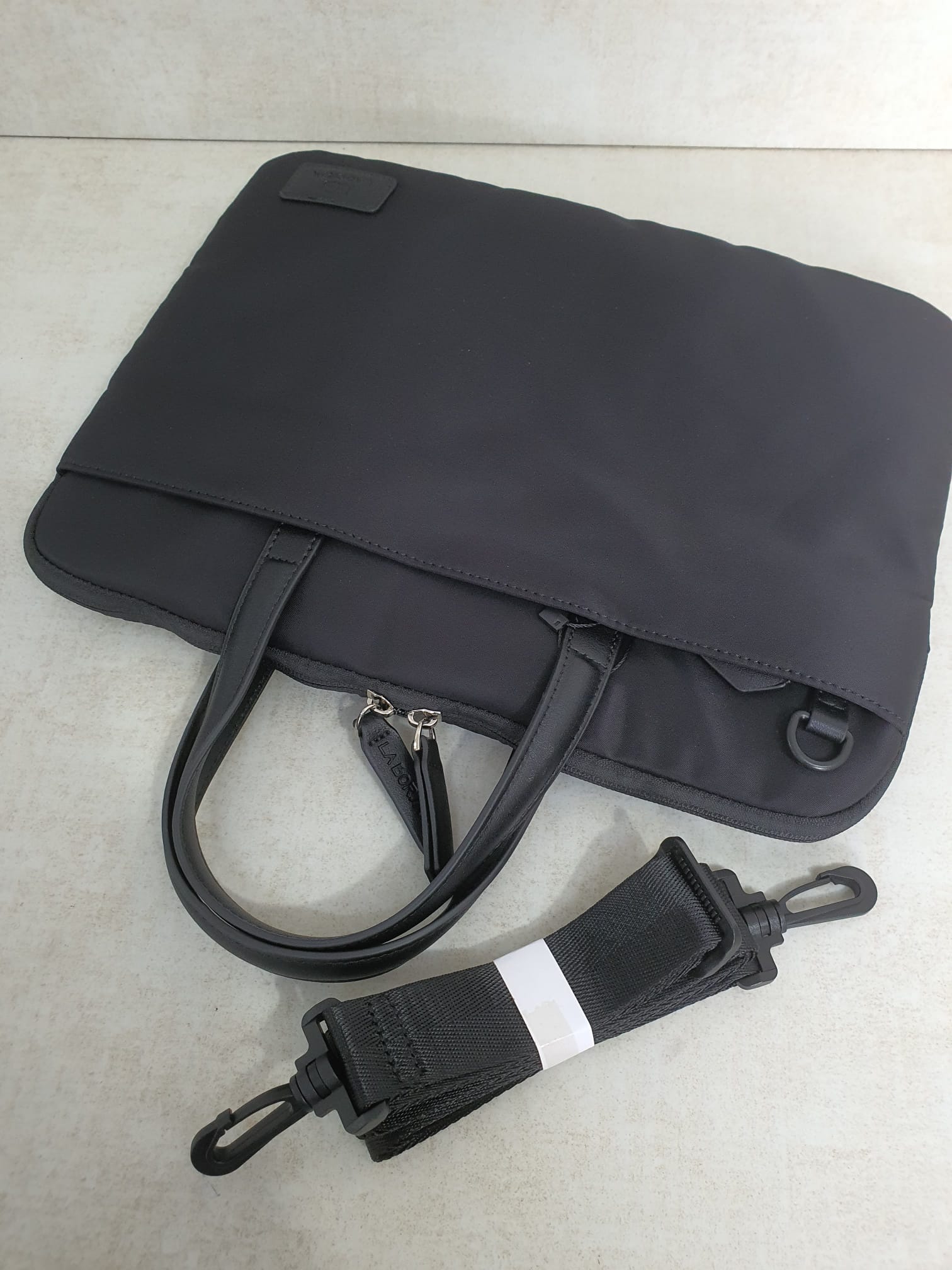 השימוש בתיק הוא חוויה נוחה ומועילה, המאפשרת לנשיאת מחשב נייד ופריטים נוספים בקלות ובבטיחות. הידיות העור המעוקלות והאבזם המתכת הקטן מאפשרים נשיאה נוחה ויציבה, והחומר העמיד והחלק מבטיח כי התיק יחזיק מעמד לאורך זמן. הרוכסן המרכזי והרוכסן הקטן יותר בחלקו הקדמי של התיק מאפשרים ארגון ואחסון של פריטים שונים, והלוגו המודפס על התיק מוסיף נגיעה של סגנון ואיכות. התיק הוא פריט מועיל ונחוץ, המאפשר לנשיאת מחשב נייד ופריטים אחרים בבטיחות ובנוחות, ומהווה חלק חשוב מהציוד היומיומי.